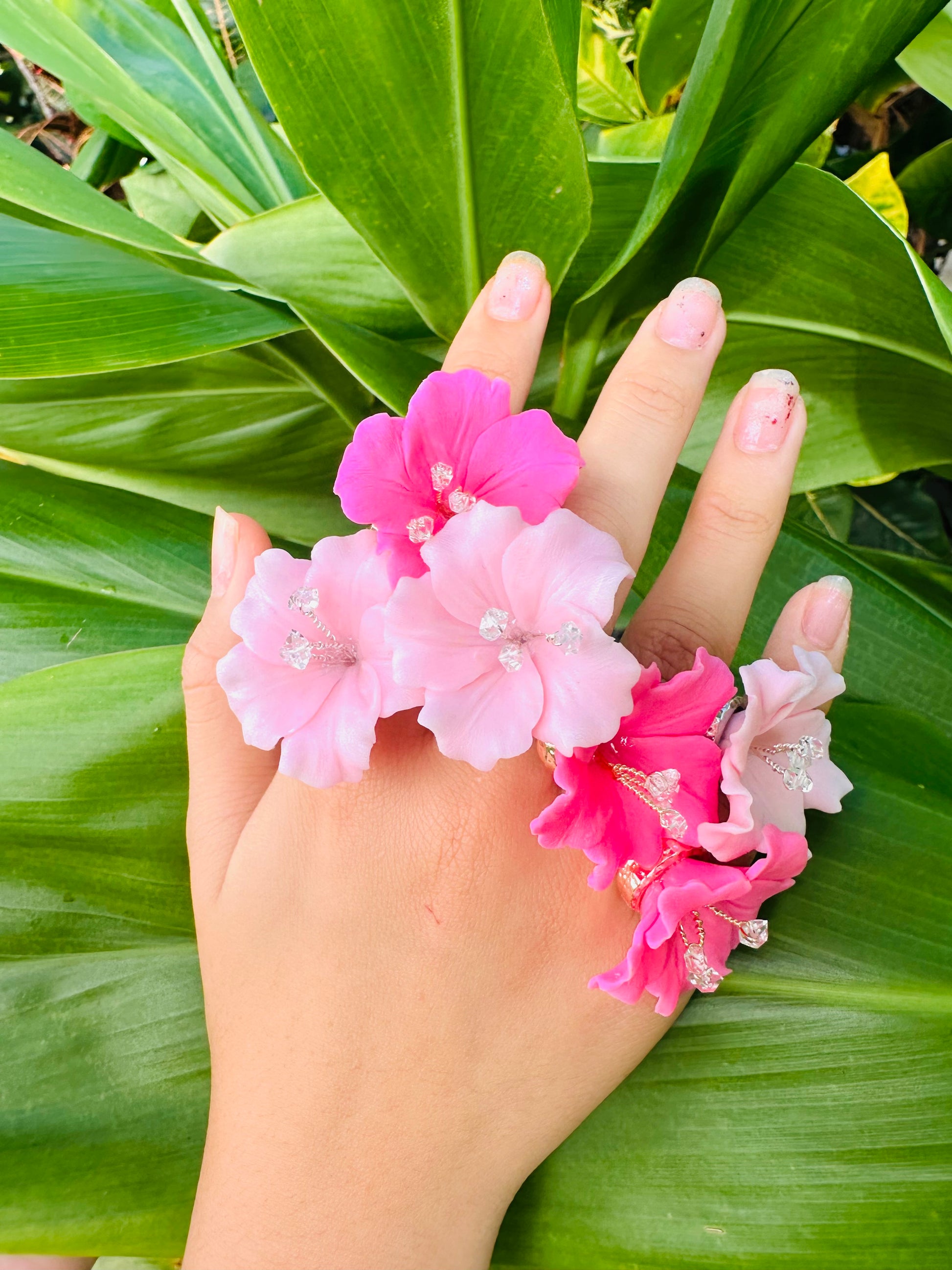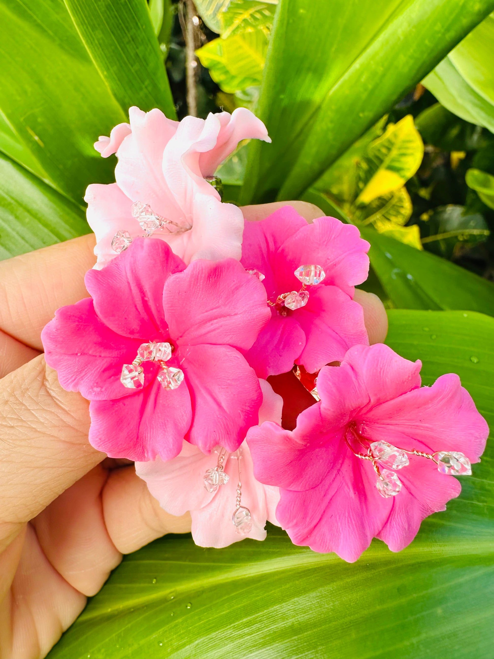Herkimer Diamond Hibiscus Rings