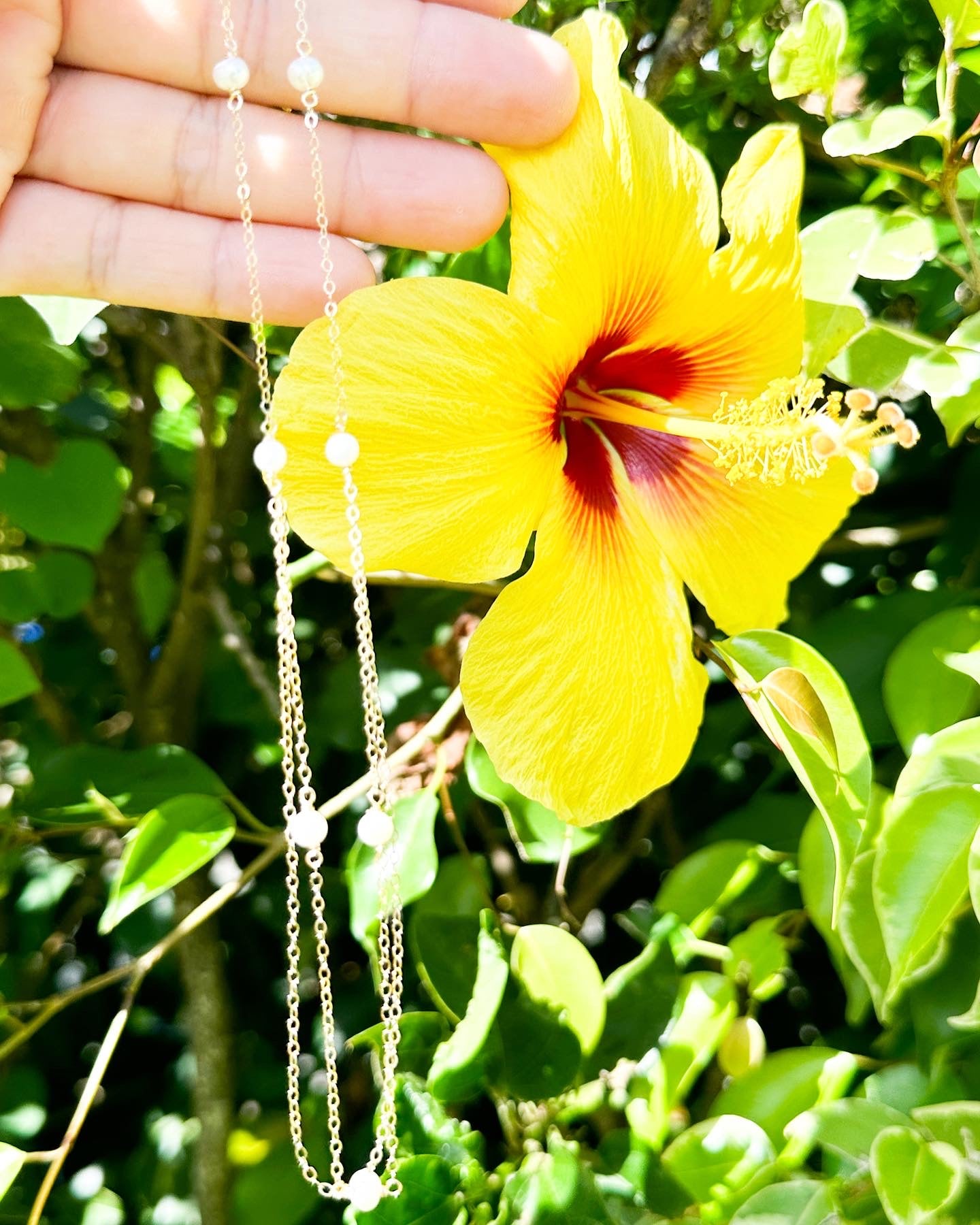 Each piece is handmade with love using 14k gold-filled elements, natural shells, pearls, gemstones, glass, and clay beads. Treat it kindly and it will last beautifully. 💛