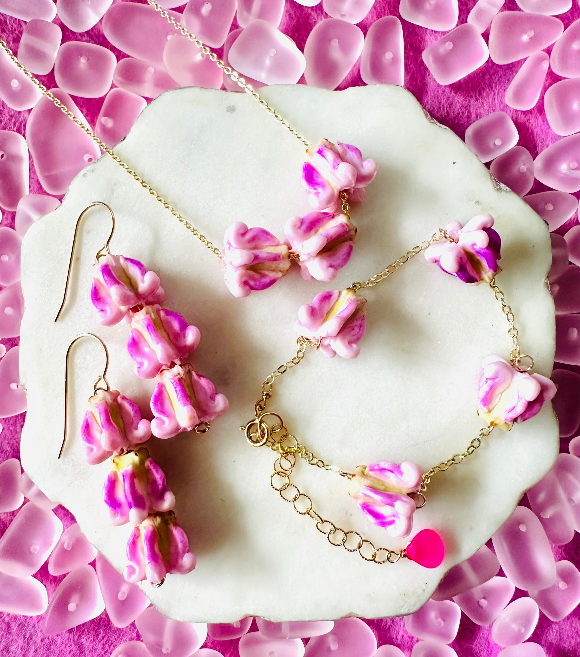 Each piece is handmade with love using 14k gold-filled elements, natural shells, pearls, gemstones, glass, and clay beads. Treat it kindly and it will last beautifully. 💛