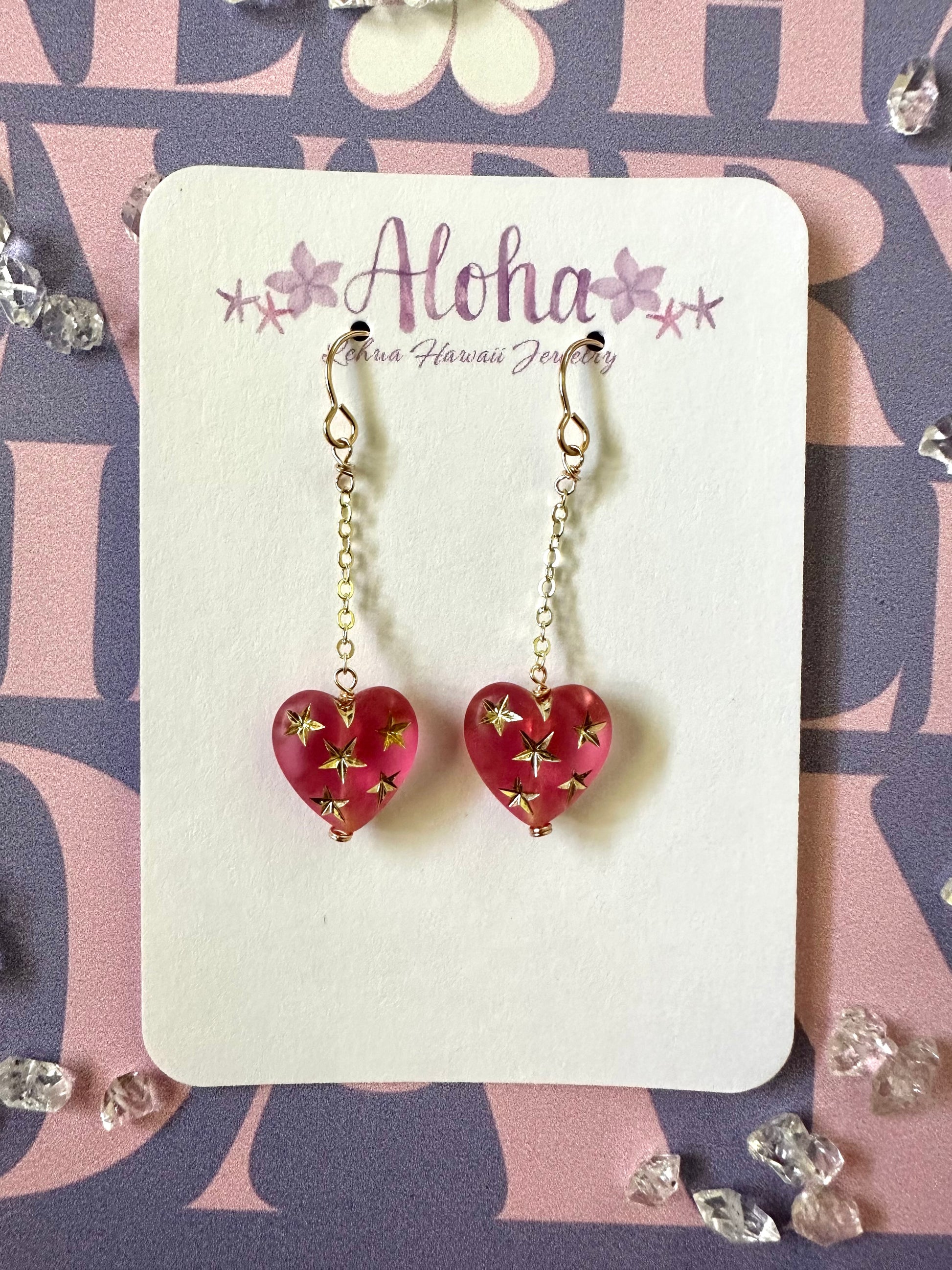 Pink Heart & Golden Star Earrings