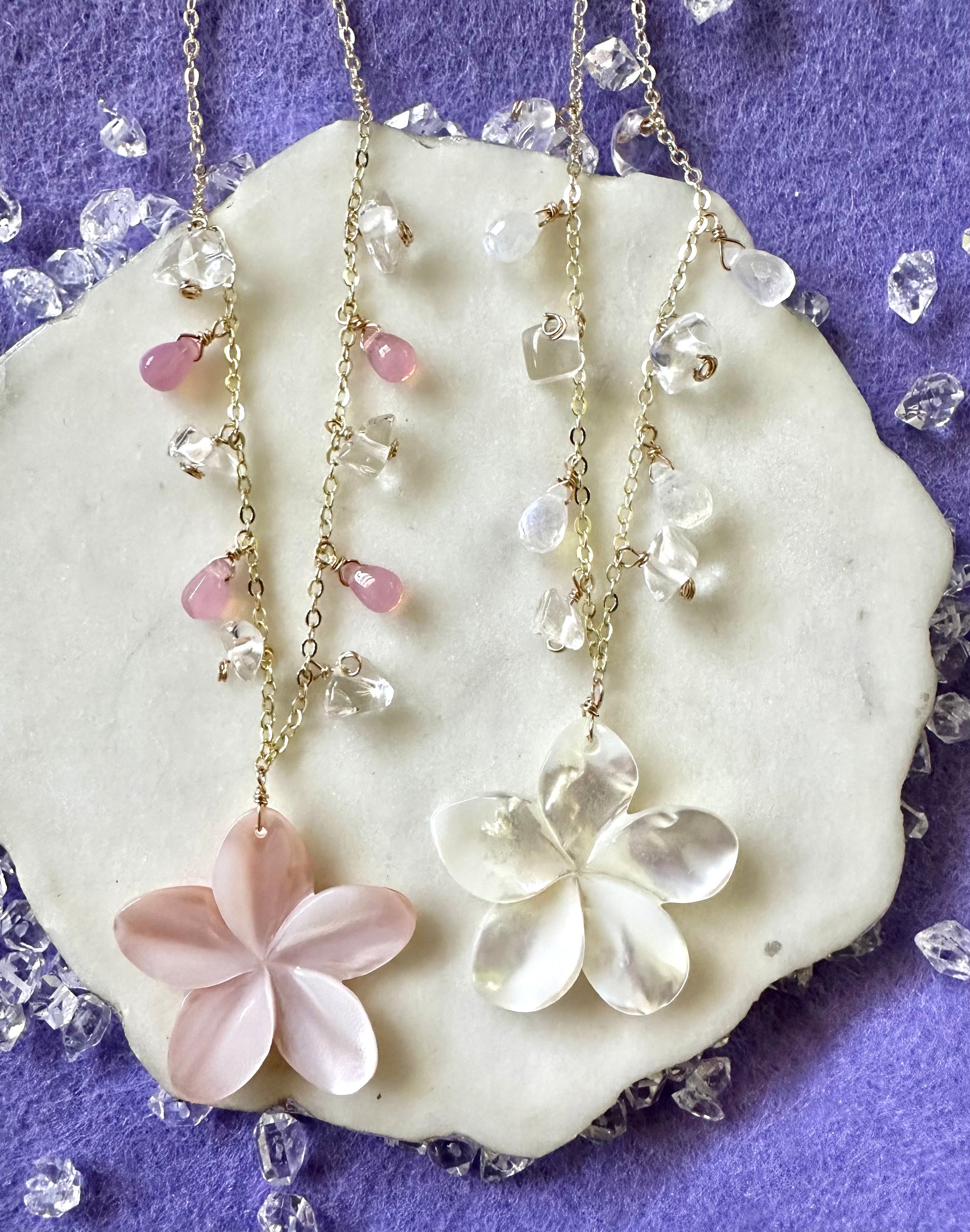 Each piece is handmade with love using 14k gold-filled elements, natural shells, pearls, gemstones, glass, and clay beads. Treat it kindly and it will last beautifully. 💛